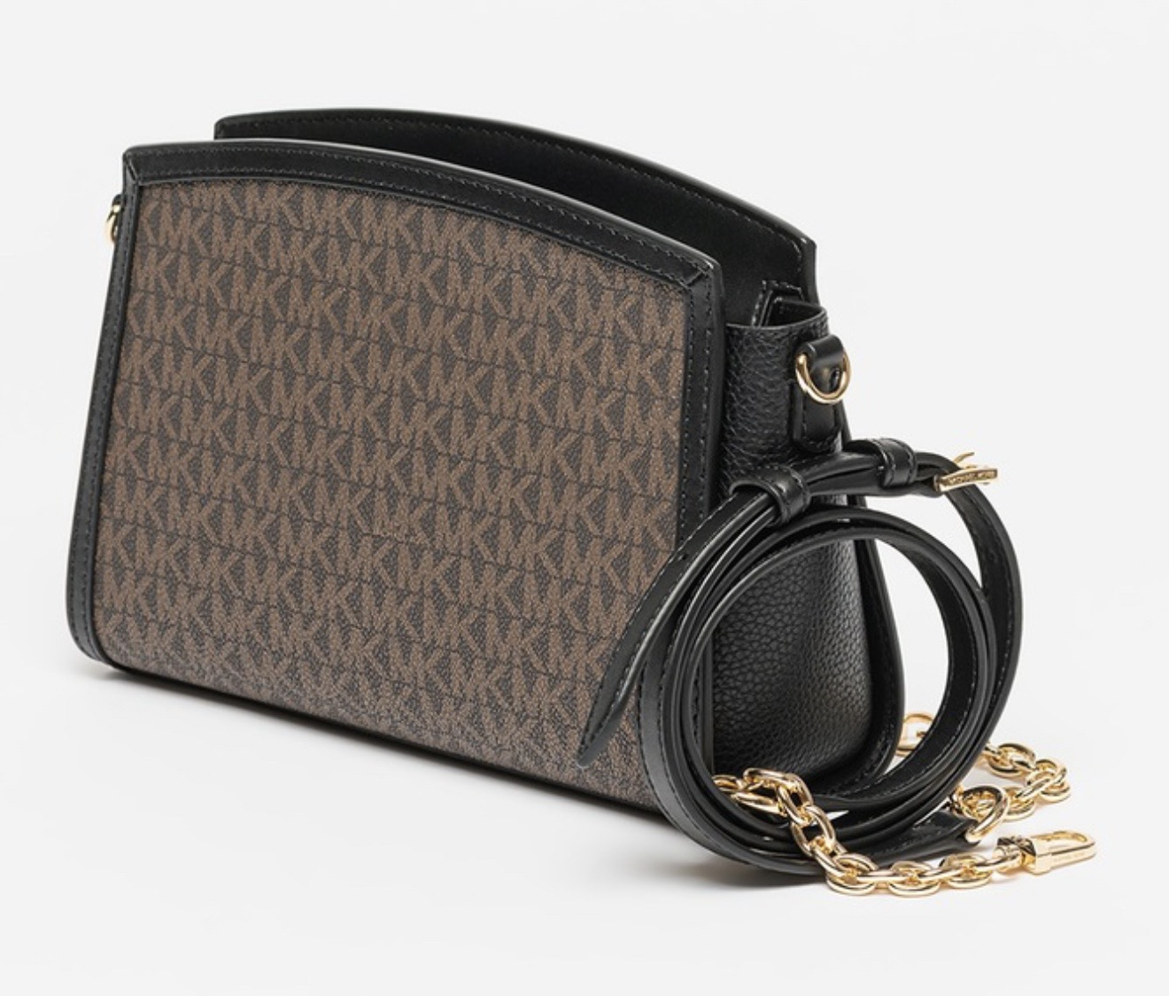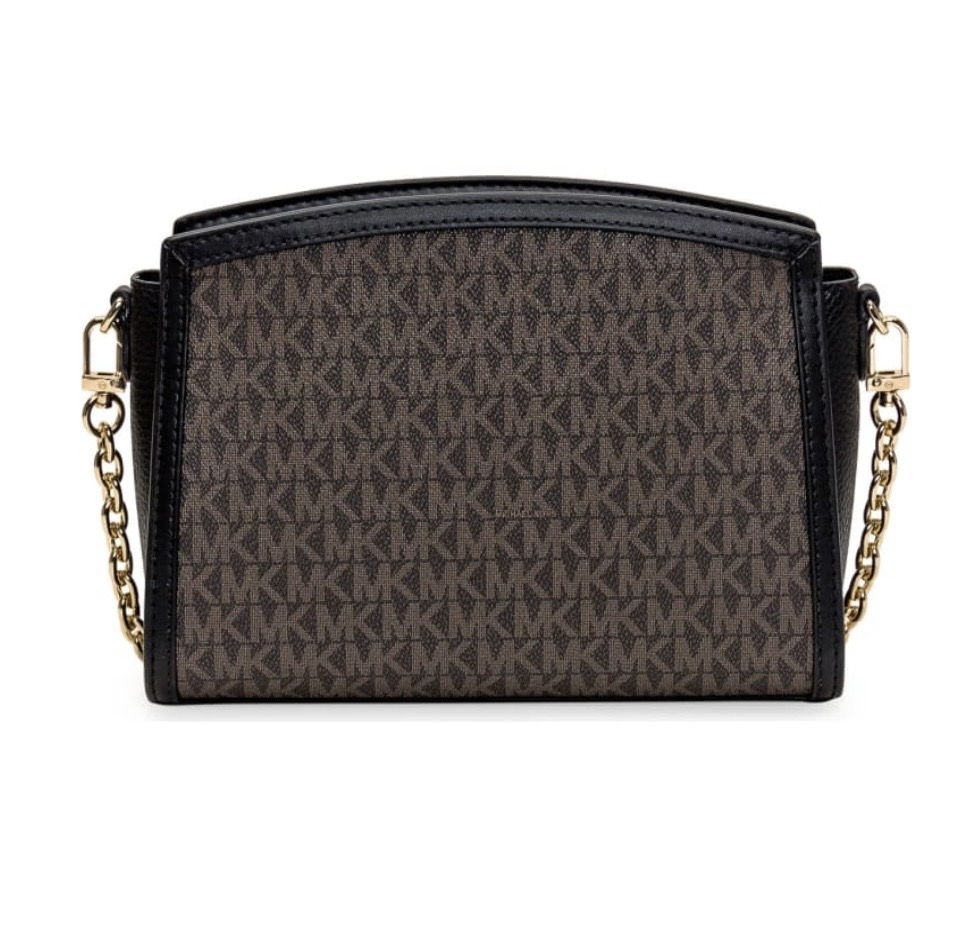 logo-ul metalic "MK" auriu, adaugă un accent de lux specific colecțiilor Michael Kors. Versatilitatea este asigurată de cureaua de umăr ajustabilă, care integrează segmente de