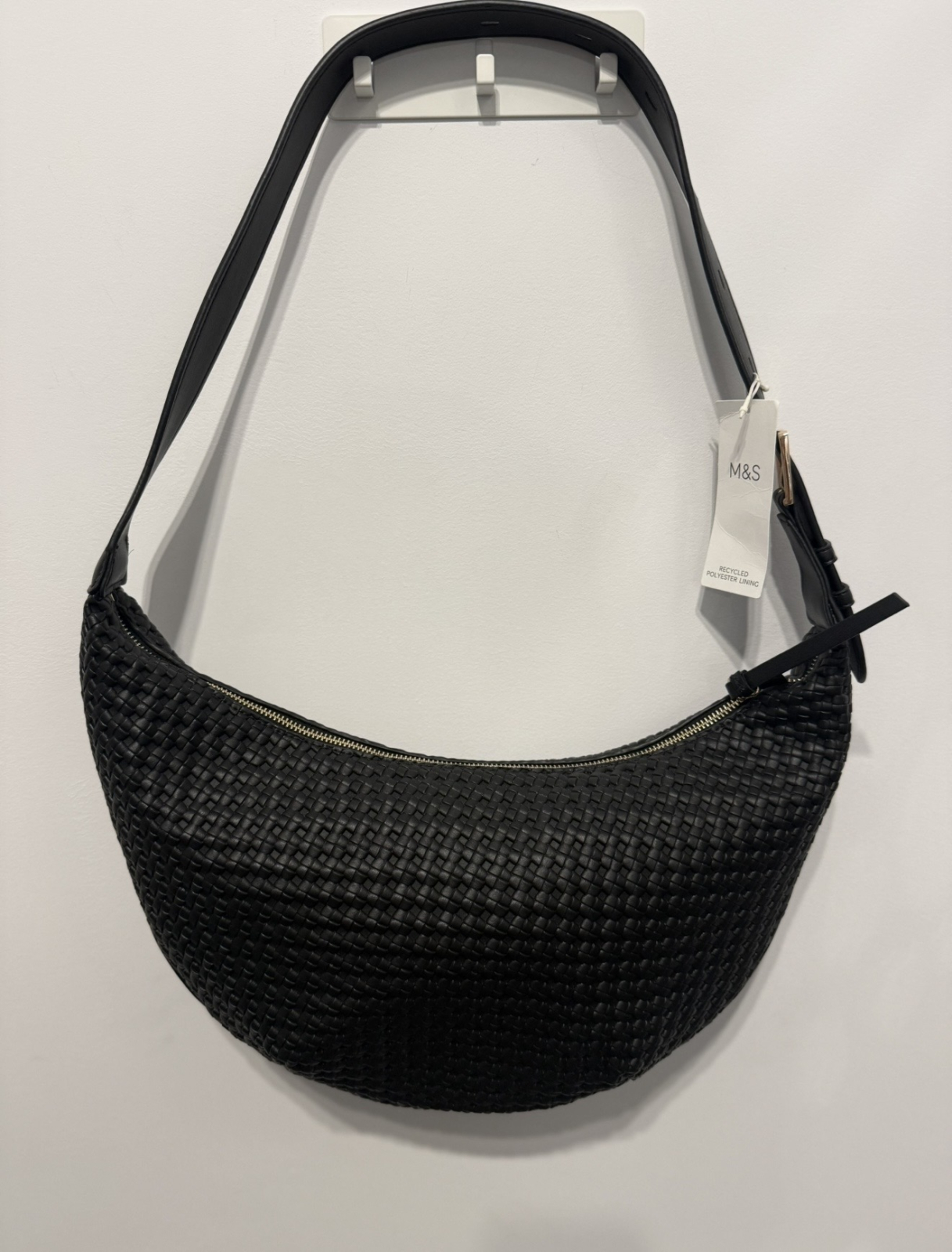 Geantă de Umăr Marks & Spencer Faux Leather Woven, Neagră
