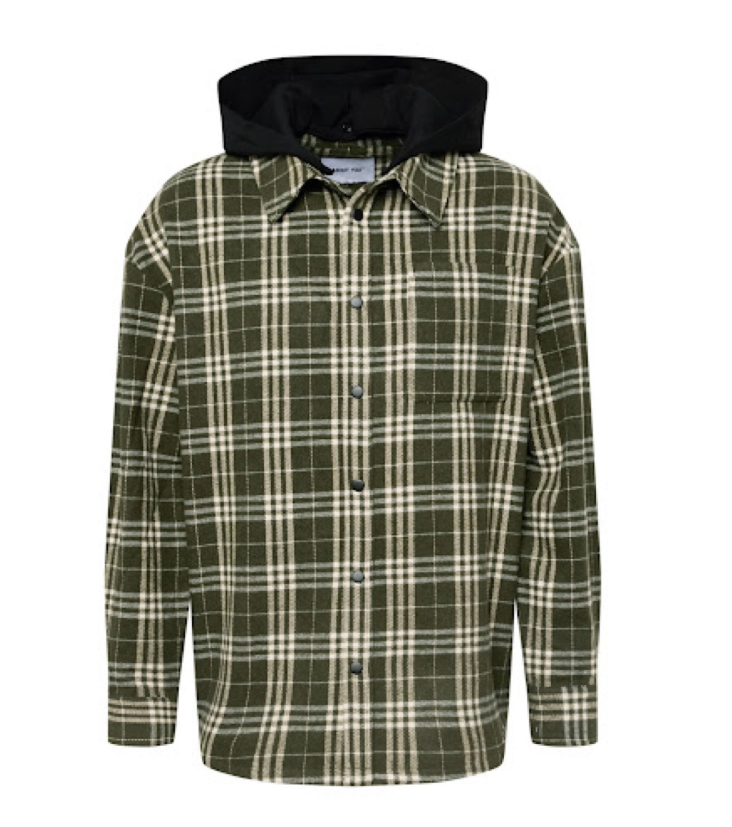 Jacheta Nathan About You este o piesă vestimentară cu un design hibrid, care combină aspectul unei cămăși în carouri cu funcționalitatea unei geci ușoare.