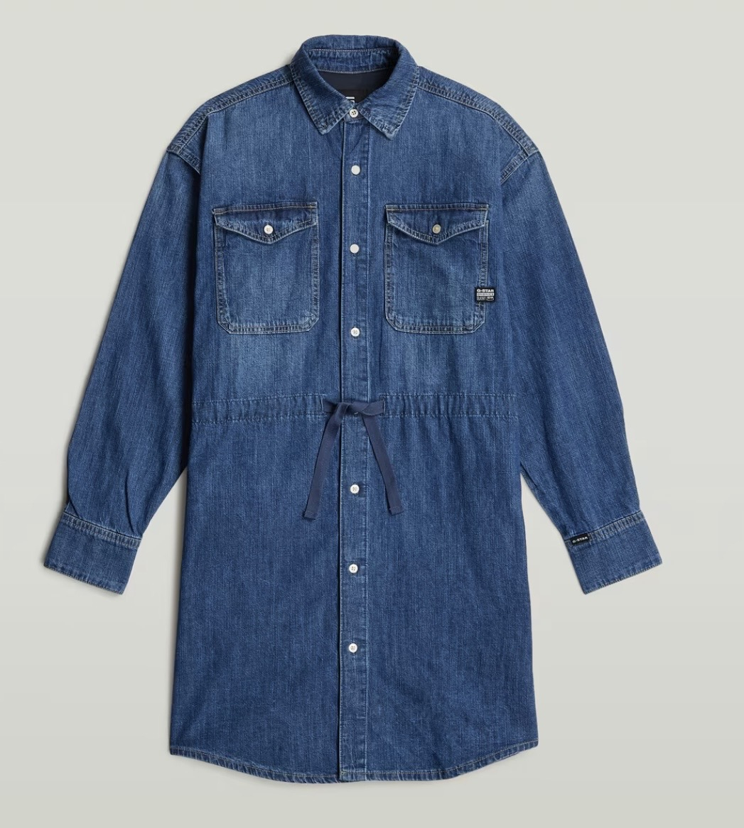 Rochia din denim G-Star Raw Relaxed Drawcord reprezintă piesa ideală pentru o garderobă modernă, îmbinând estetica relaxată a unei cămăși clasice cu feminitatea unei rochii mini. Designul său este definit de o croială lejeră (relaxed fit) și o lungime modernă deasupra genunchiului, oferind un look contemporan și plin de stil. Elementul central de versatilitate este reprezentat de șnurul reglabil din talie, care permite personalizarea siluetei; rochia poate fi purtată largă pentru o apariție nonșalantă sau strânsă pentru a evidenția talia într-un mod subtil.