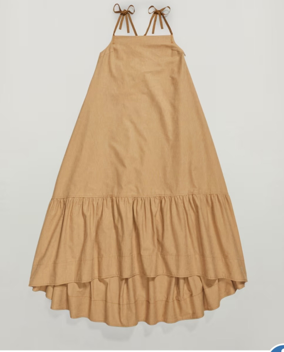 Calitatea superioară a acestei rochii este dată de materialul său durabil, un amestec premium de 75% bumbac și 25% in (Lightweight Imperial Denim). Această combinație oferă textura robustă a denimului ușor, beneficiind în același timp de proprietățile răcoroase și respirabile ale inului. Nuanța caldă de maro (Chipmunk) și aspectul natural al fibrelor fac din acest model o alegere versatilă, ideală atât pentru o plimbare pe plajă, cât și pentru o ieșire relaxată în oraș.