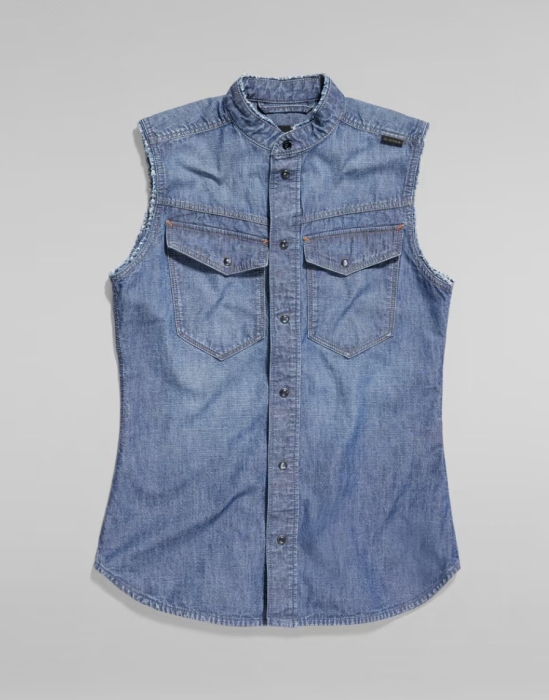 Cămașa premium din denim de la G-Star RAW reprezintă o piesă esențială pentru garderoba modernă, oferind un echilibru perfect între stilul utilitar și o croială feminină rafinată. Această piesă vestimentară este proiectată cu o siluetă slim fit care pune în valoare linia corpului, fiind ideală pentru a fi purtată ca atare sau în combinații stratificate. Detaliul distinctiv este reprezentat de gulerul tip tunică (band collar), care adaugă un plus de caracter și o notă minimalistă designului clasic.